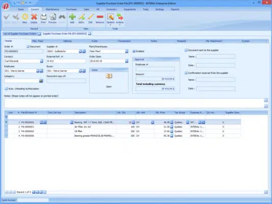 INTERAL Procurement te permite gestionar de forma r谩pida y eficiente las 贸rdenes de compra enviadas a los proveedores. INTERAL Procurement reduce sustancialmente la cantidad de datos introducidos al completar la informaci贸n de la pieza y del proveedor directamente desde sus respectivos archivos.